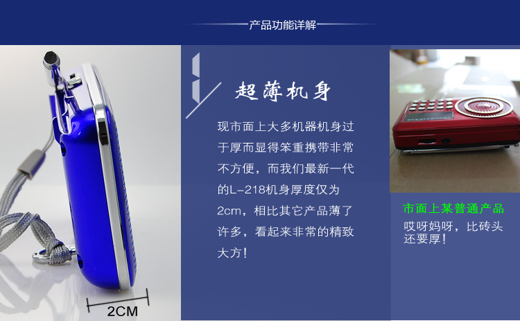 1.超薄机身,厚度仅为2CM,使机器更显高档大气;